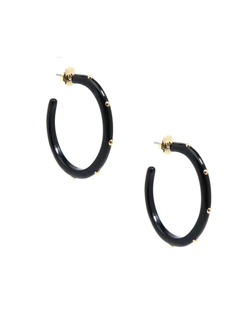The perfect style for a fashionista! This hoop earring features tortoise print resin with gold-tone studs.-Post Back-1.5…