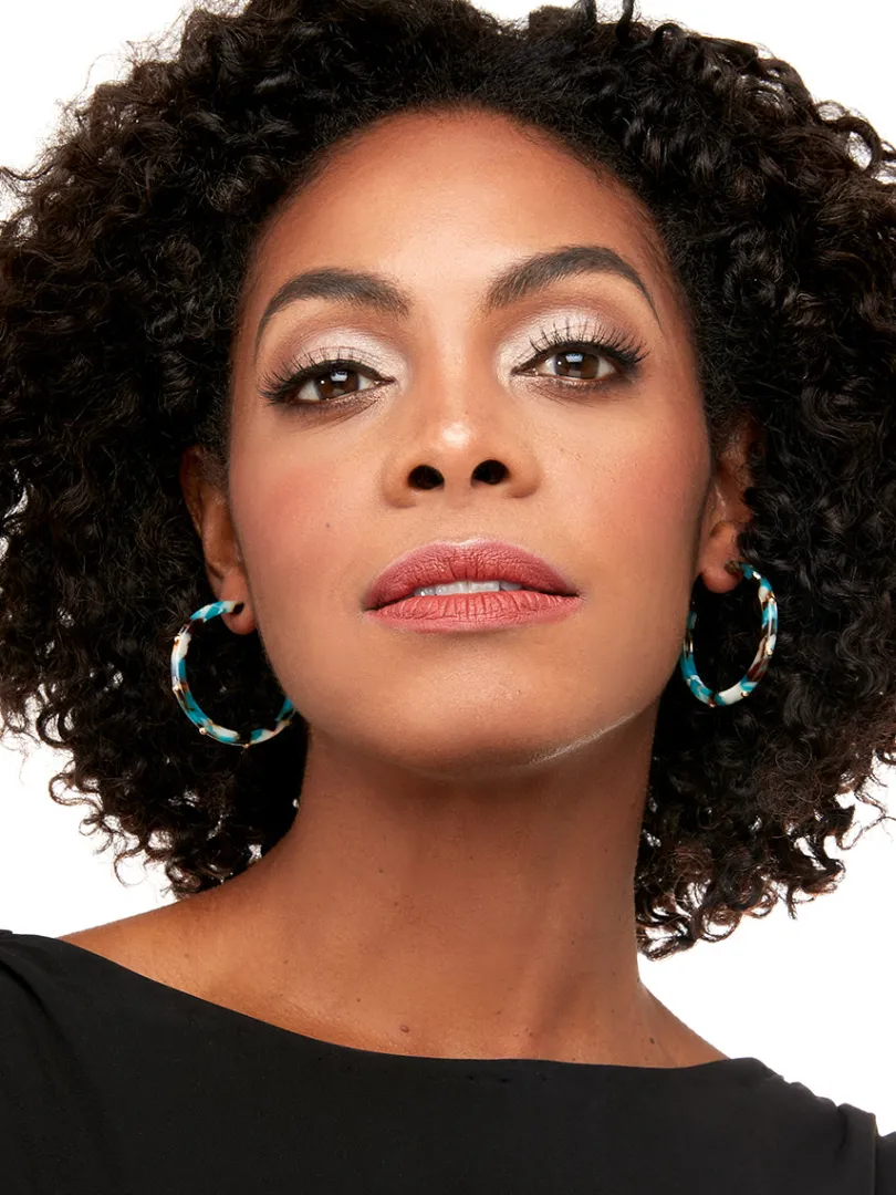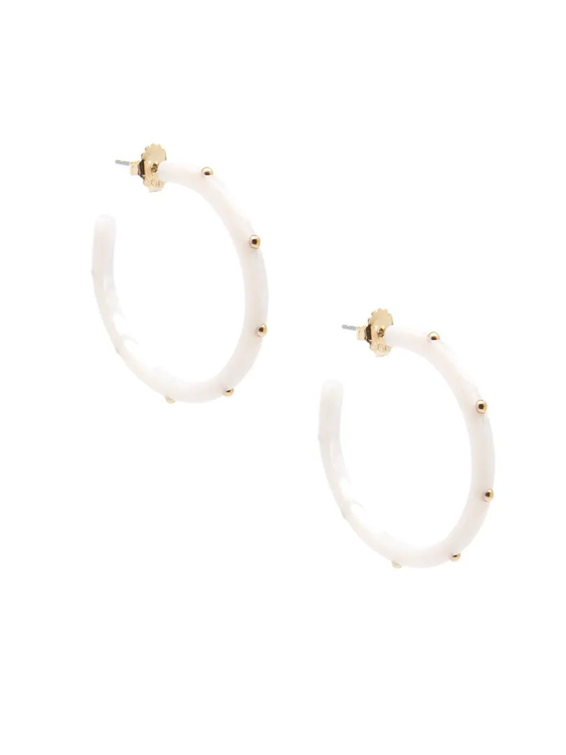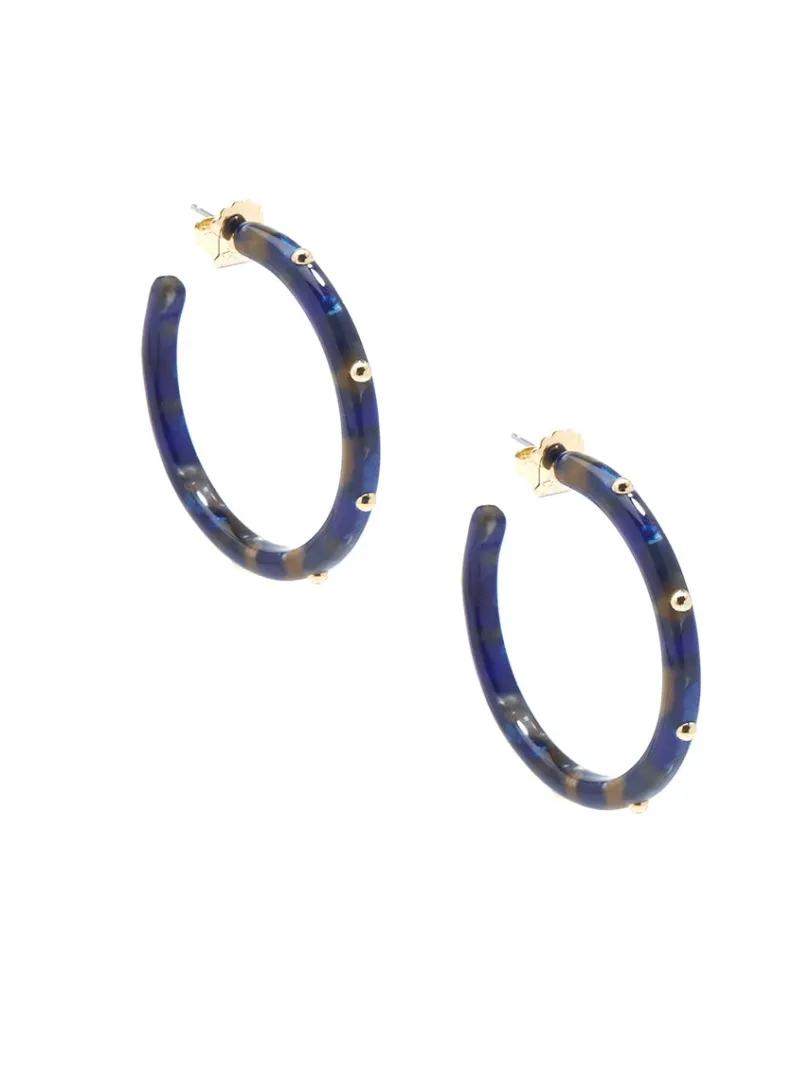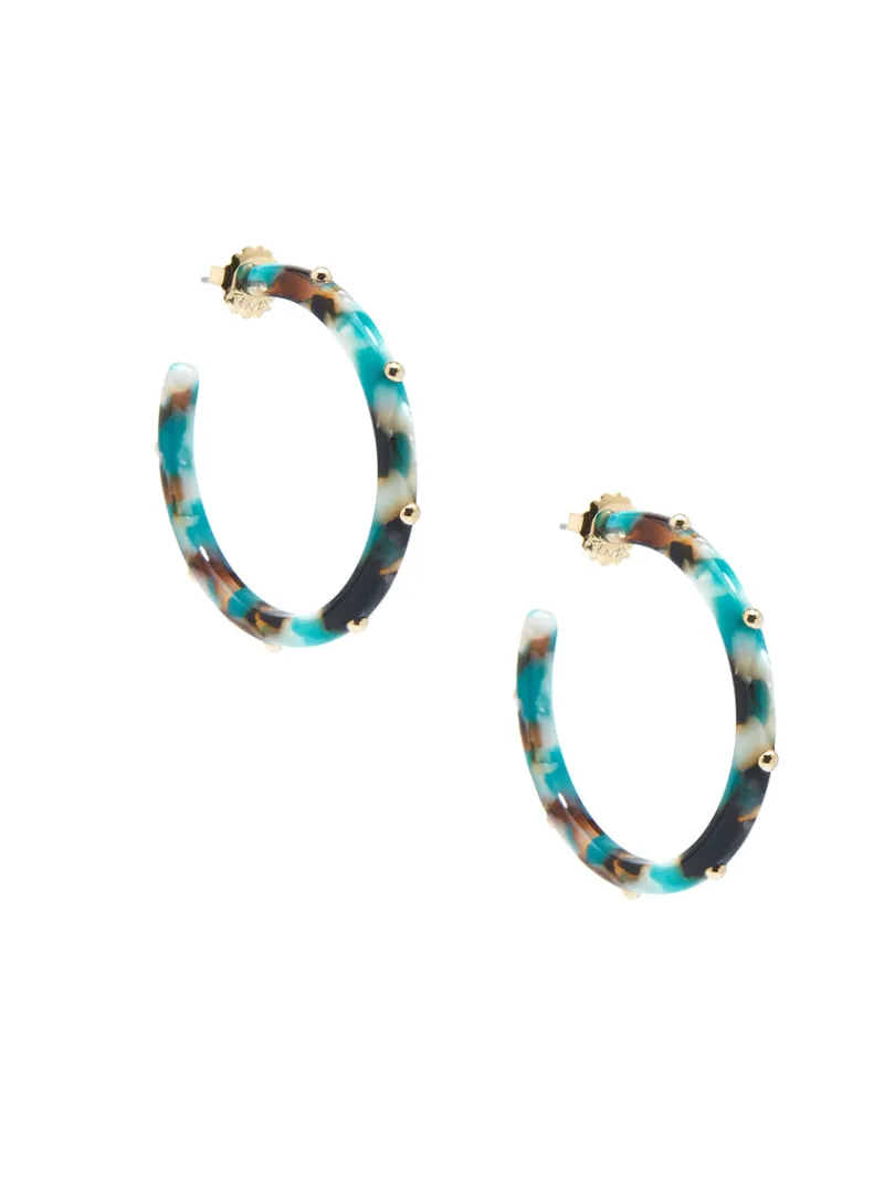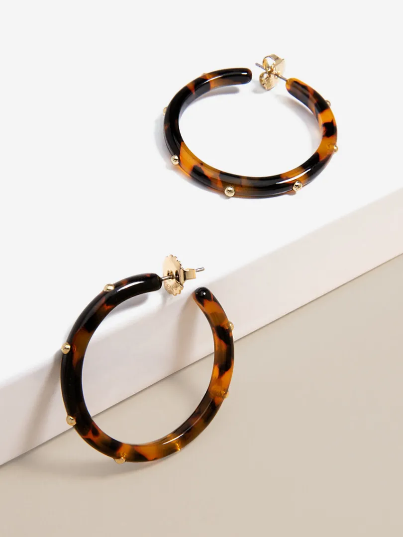The perfect style for a fashionista! This hoop earring features tortoise print resin with gold-tone studs.