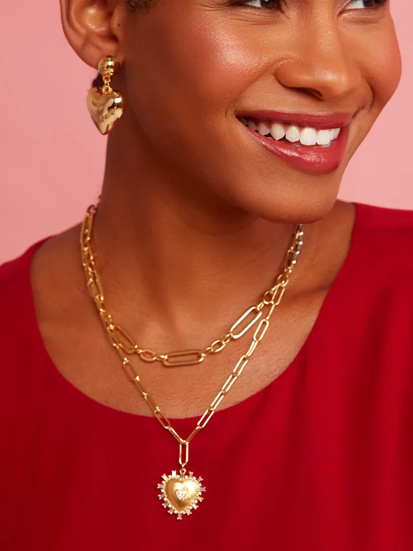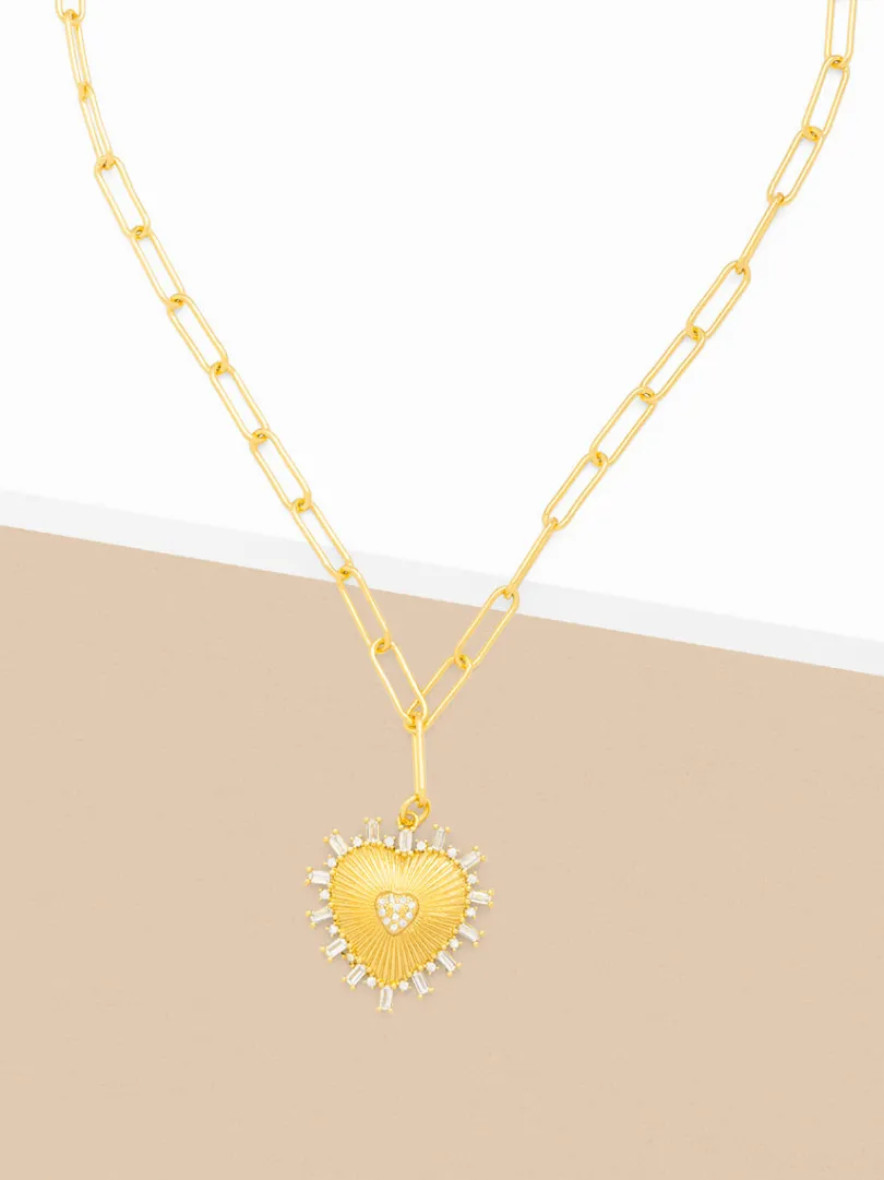 Your love story begins with a beautifully embellished heart pendant sparkling with crystals.