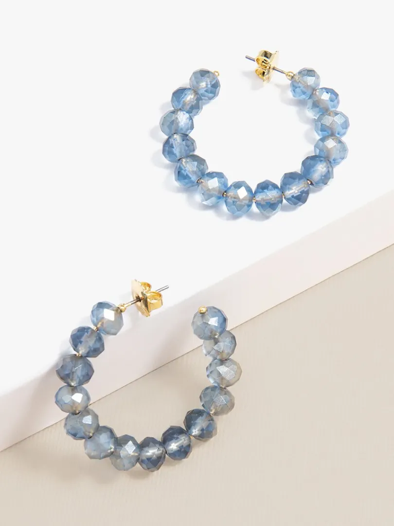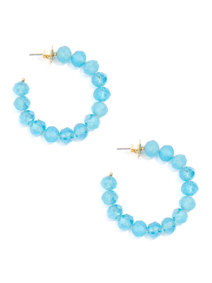 It’s glow-time! These c-shaped, small hoop earrings is composed of matte, faceted crystal beads. Great for adding a touch of color to any outfit.