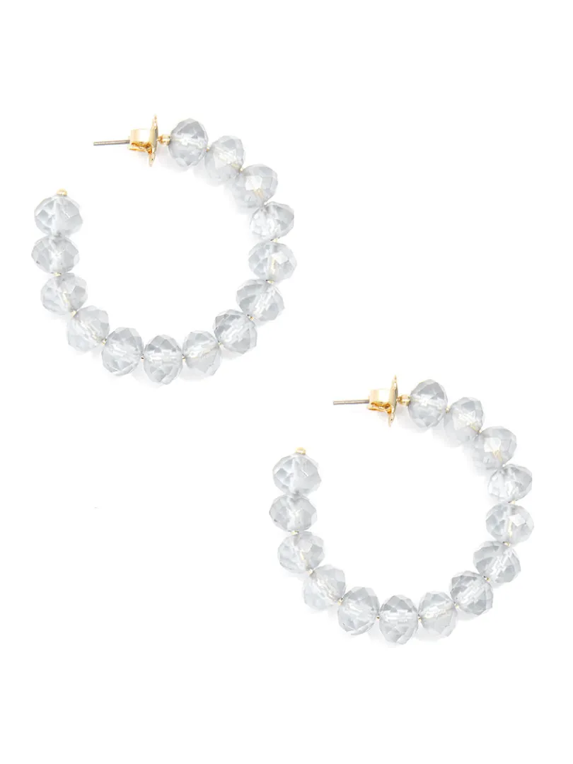 It’s glow-time! These c-shaped, small hoop earrings is composed of matte, faceted crystal beads. Great for adding a touc…