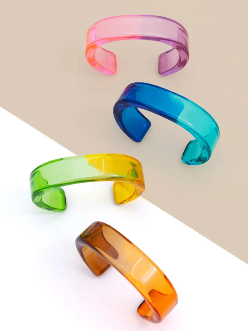 Jessica is a modern pick for your wrist. Translucent yet colorful, this lightweight accessory is all you need for easy glam day or night.