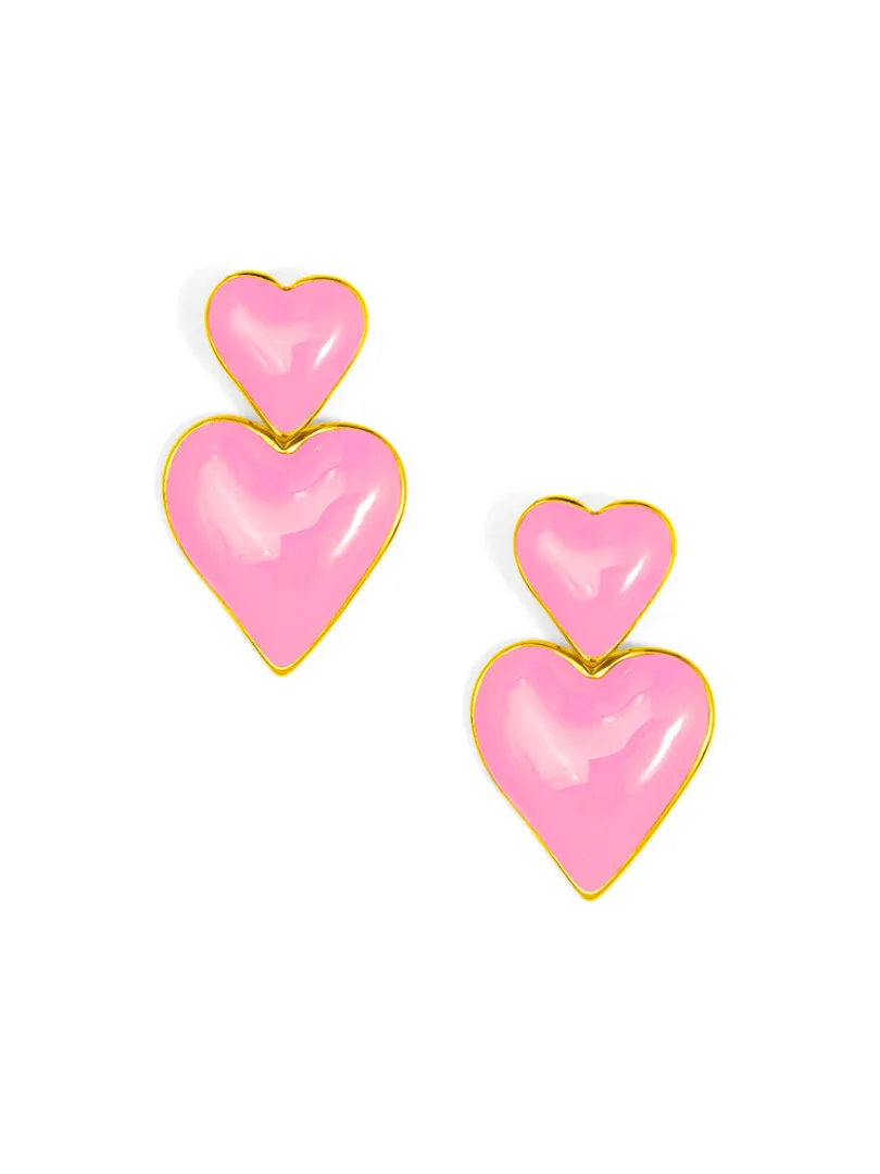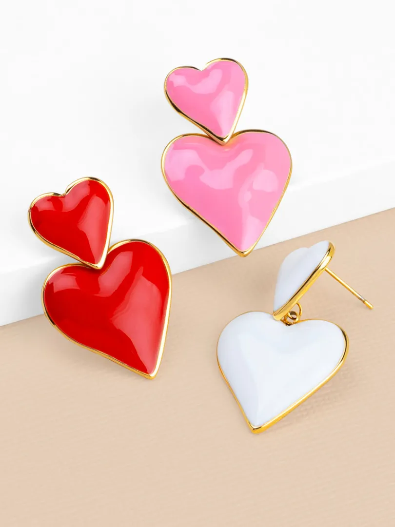 Embrace the power of love with drop earrings featuring two stacked hearts for a romantic vibe.