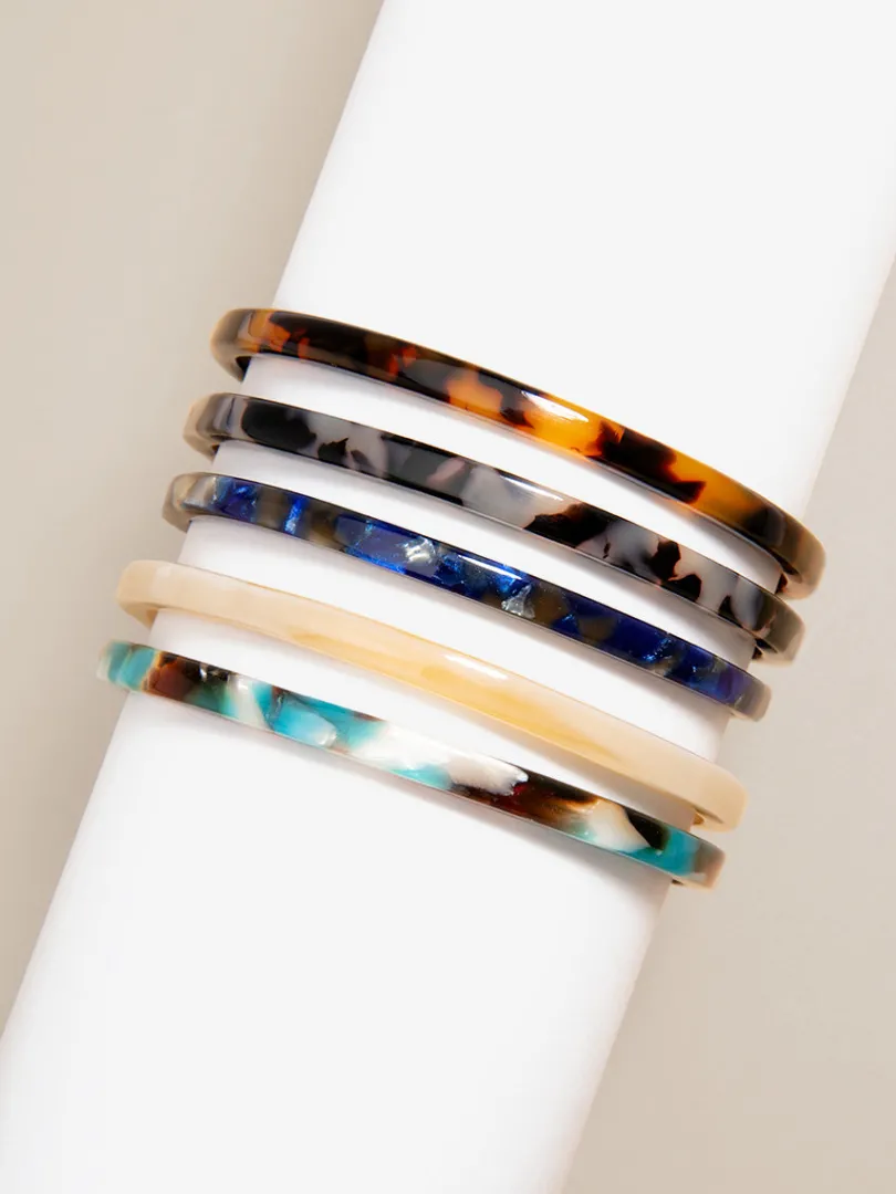Perfect for stacking with matching prints or solid colors! These thin torti-print bracelets are available in classic tortoise colors as well as pastels.